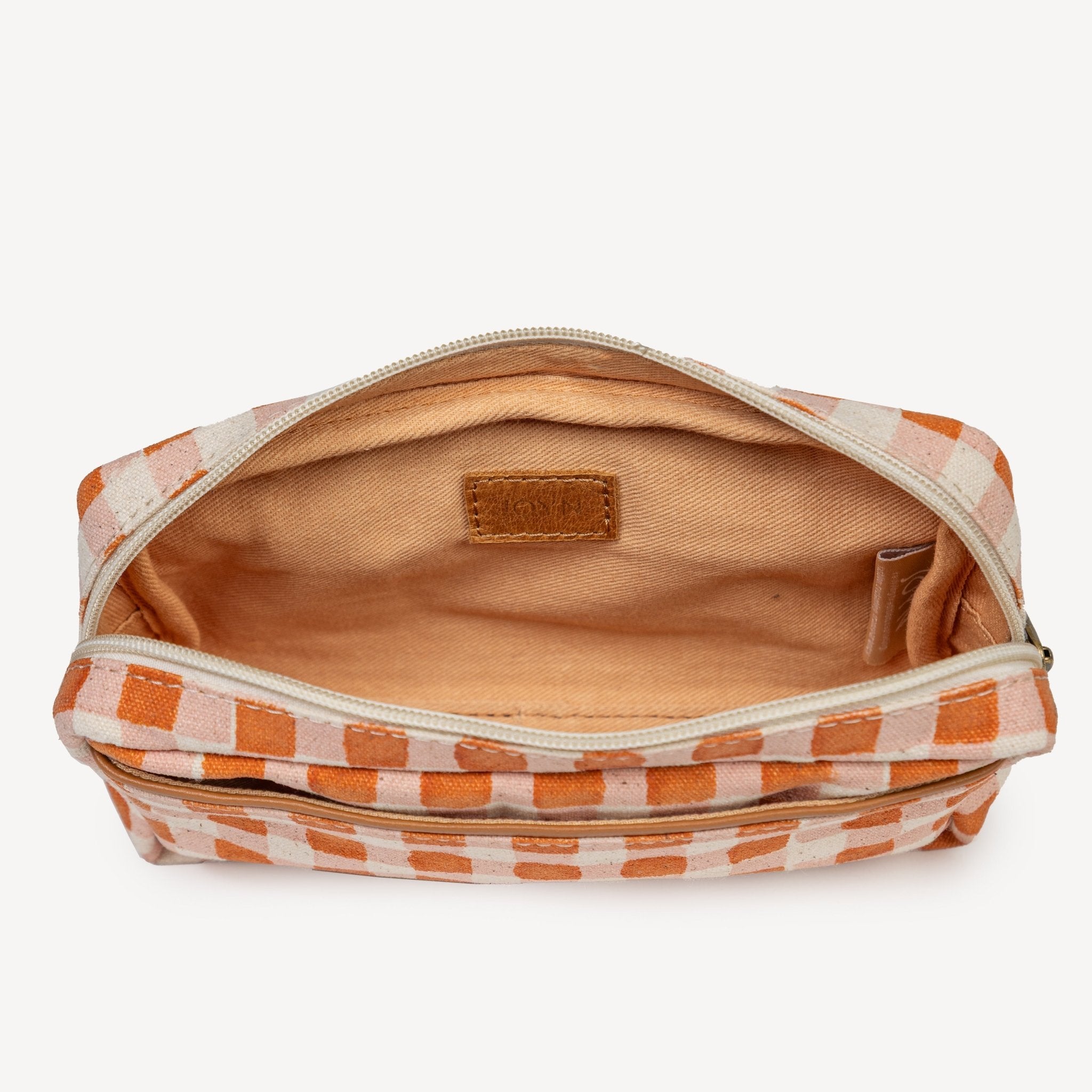 Hand block-printed cotton canvas from our Himalayan studio. Each pattern is stamped by hand using carved wooden blocks. Some designs use a single block, others layer multiple blocks to build up color and detail. Every bag is signed by its maker.